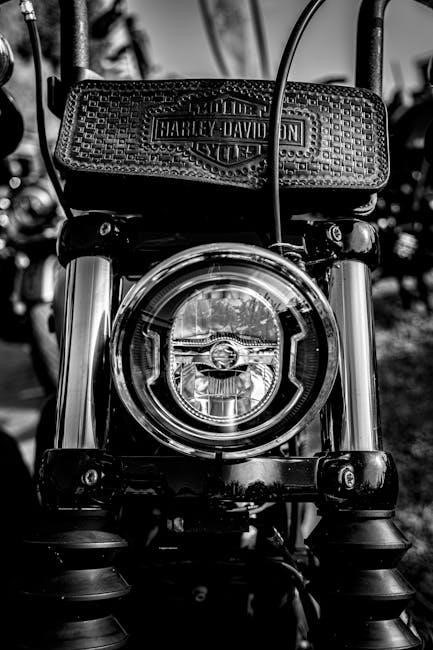 Harley-Davidson service manuals are rich with detailed diagrams and precise specifications, crucial for accurate repairs. Exploded views illustrate component relationships, aiding reassembly. Torque specifications, listed in Newton-meters or foot-pounds, are vital to prevent damage. Electrical schematics detail wiring harnesses, assisting in troubleshooting.